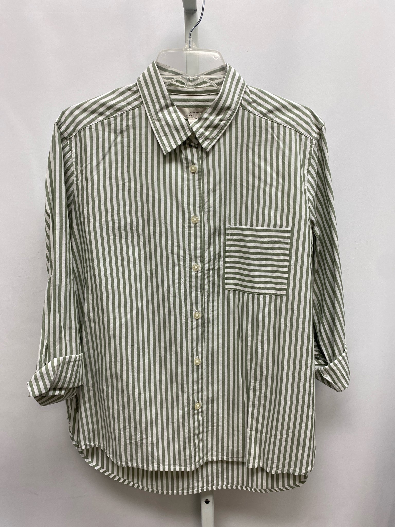 LOFT Size Medium White/Green Long Sleeve Top