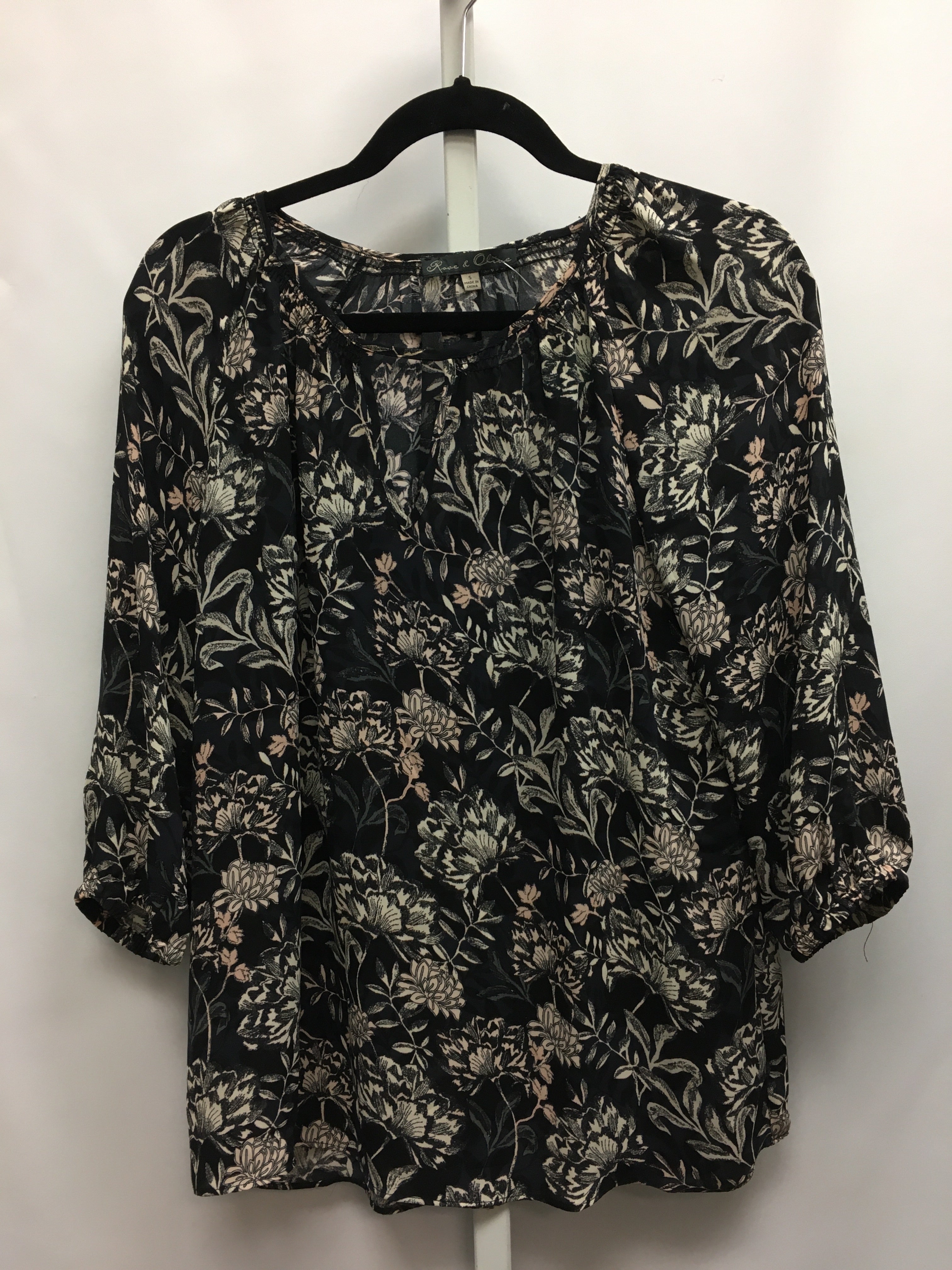 Rose & Olive Size Small Black Floral 3/4 Sleeve Top