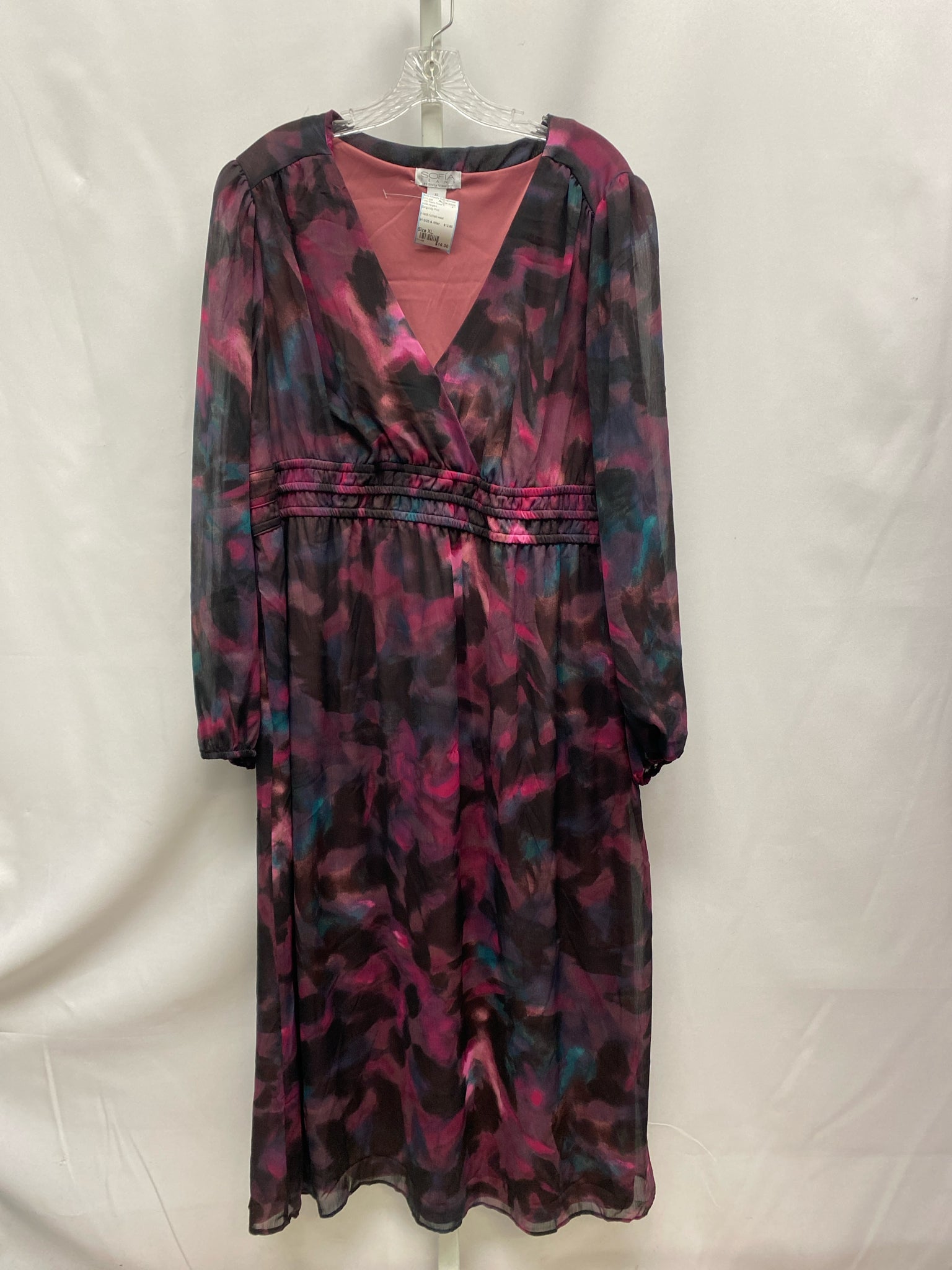 sofia vergara Size XL Burgundy Print Long Sleeve Dress