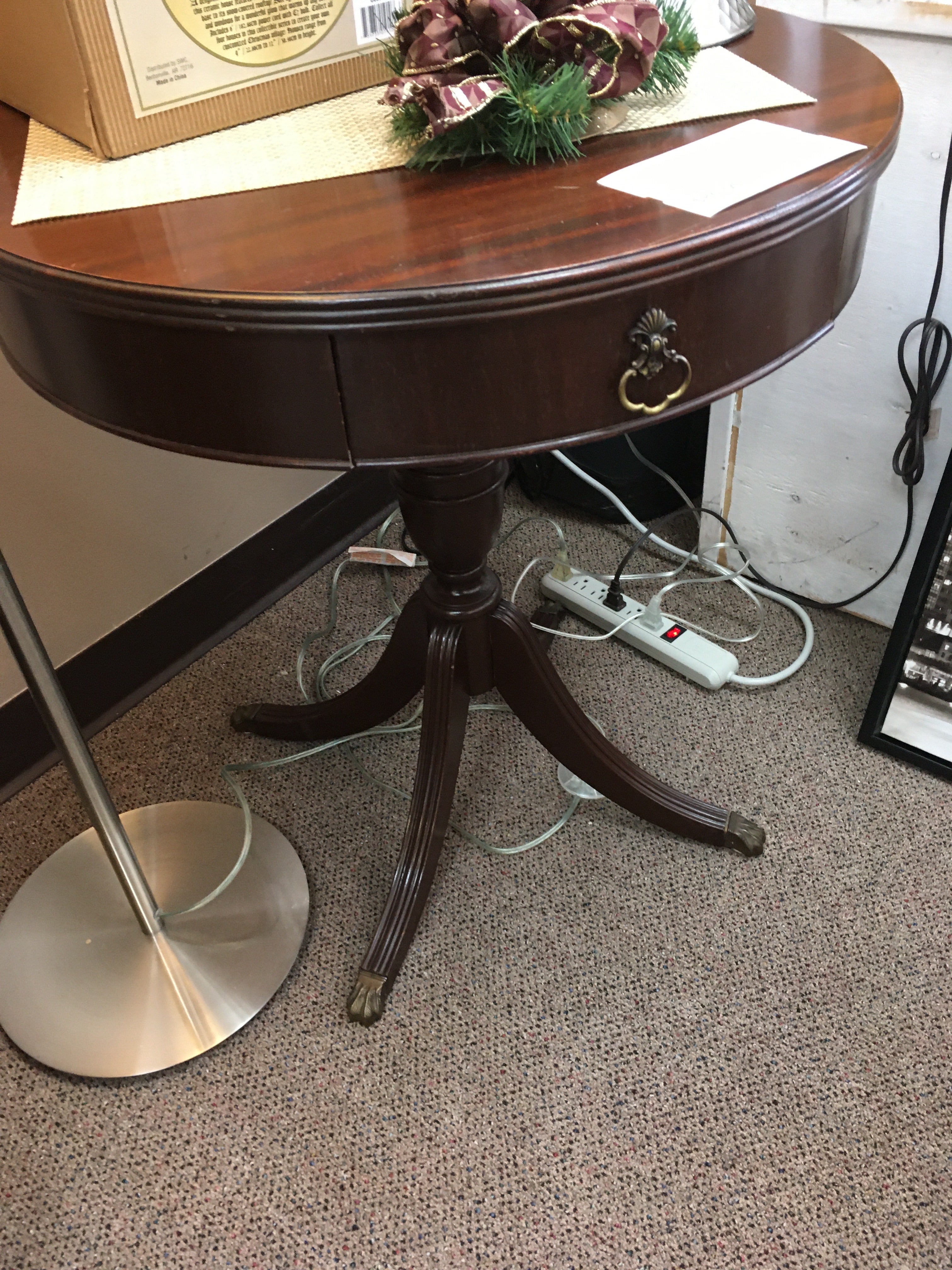 24" round with single drawer - pedestal base - 27" tall