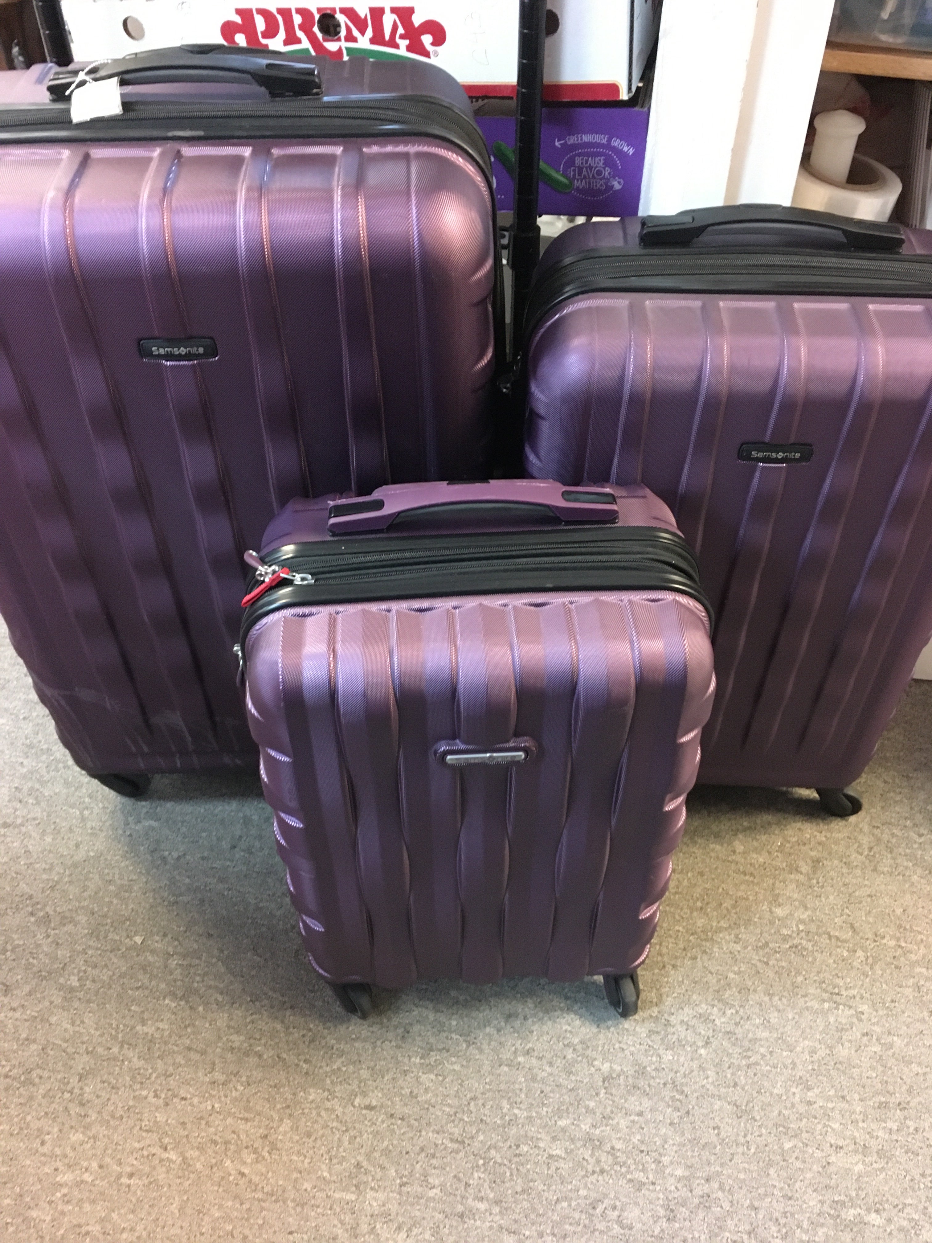 Set of 3 Purple Luggage - flaws on large