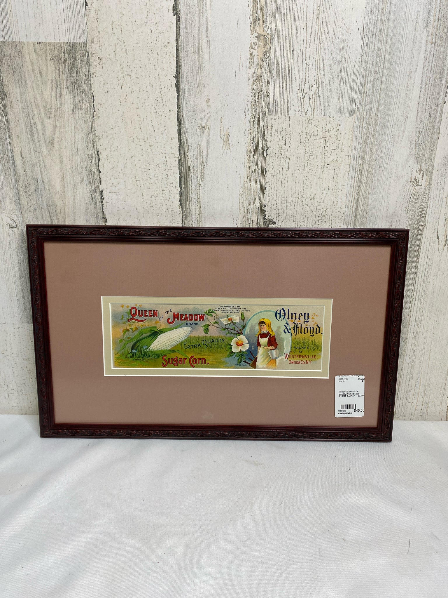 Vintage Queen of the Meadow framed Label