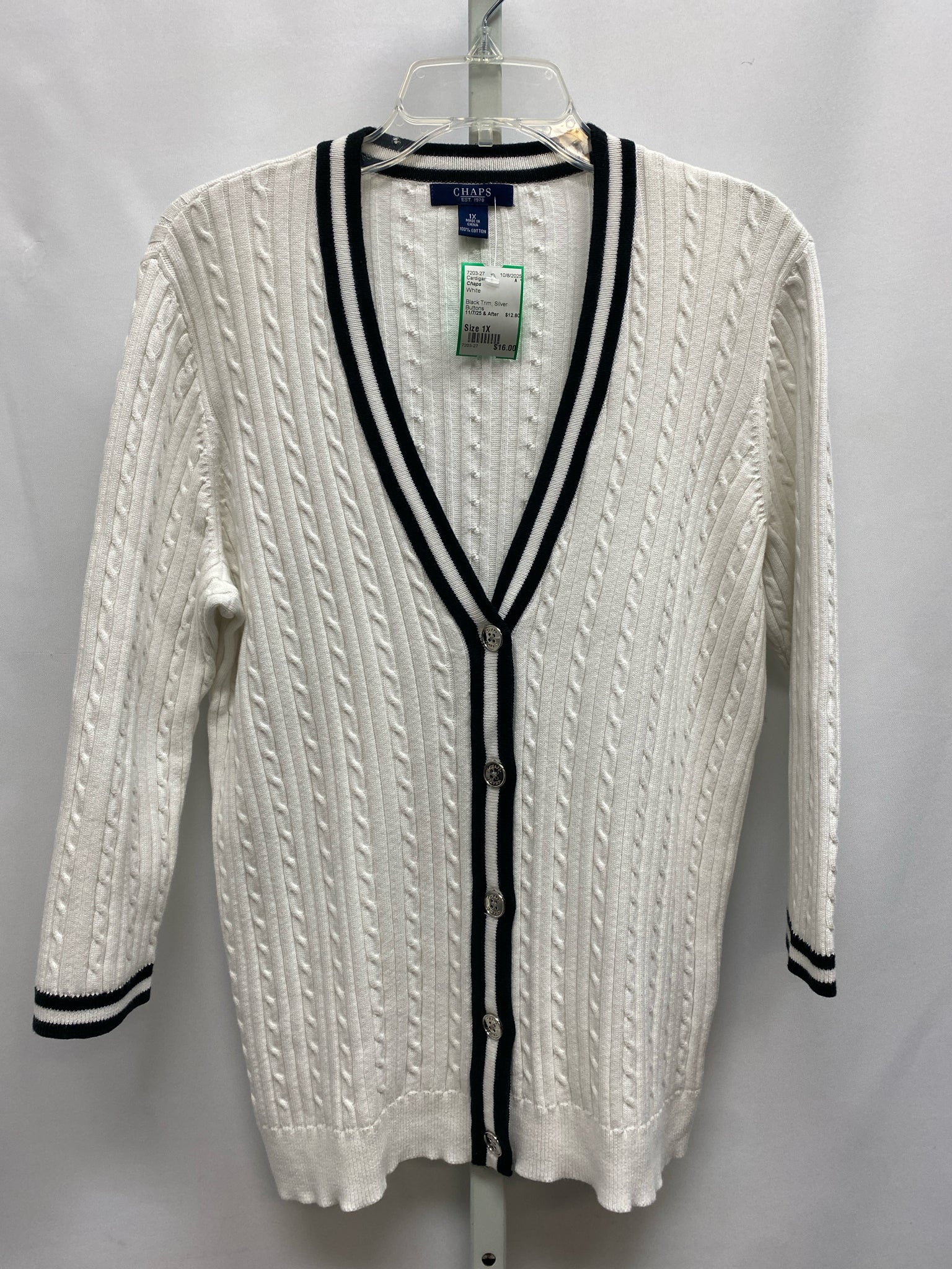 Chaps Size 1X White Cardigan