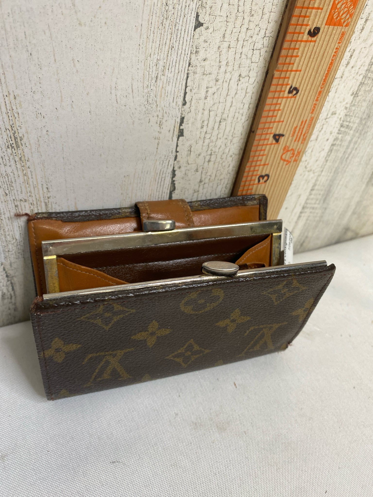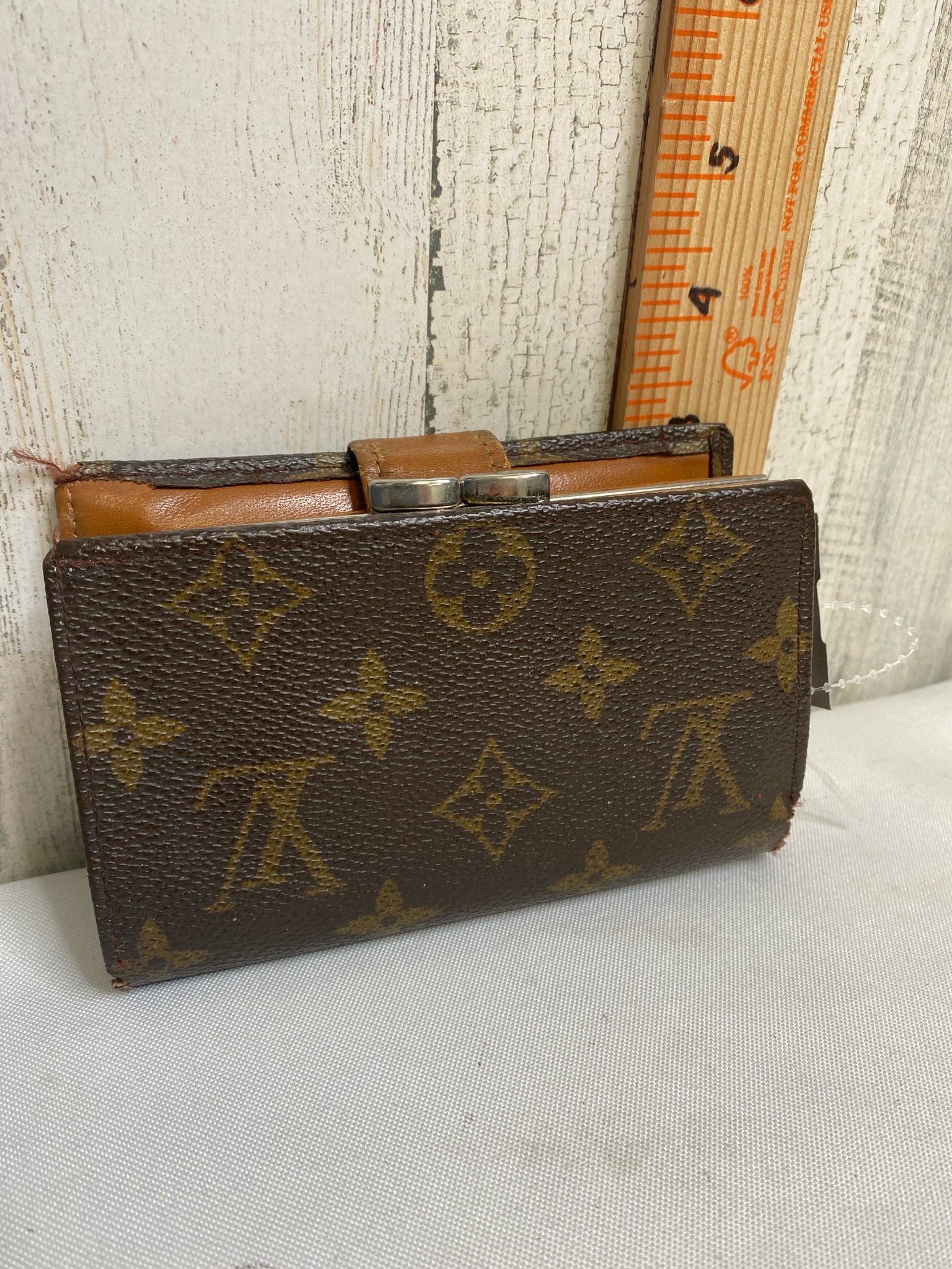 Vintage Authentic Preowned, snap closure, kiss lock coin pocket, 5" x 3.5", Certificate of Authenticity provided, condition fair, shows signs of wear and age