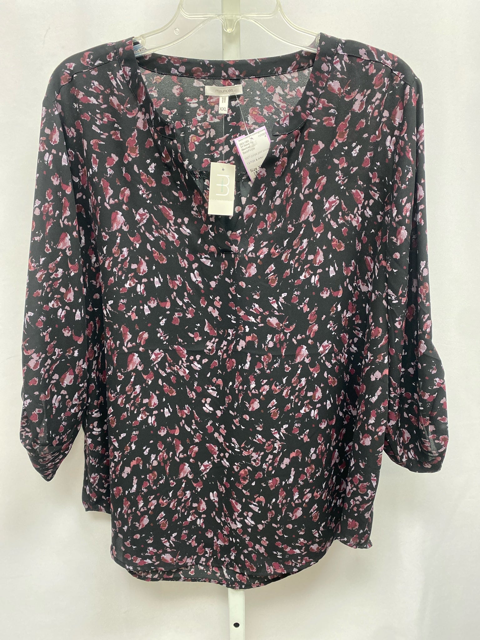 Maurices Size XXL Black/Purple 3/4 Sleeve Top