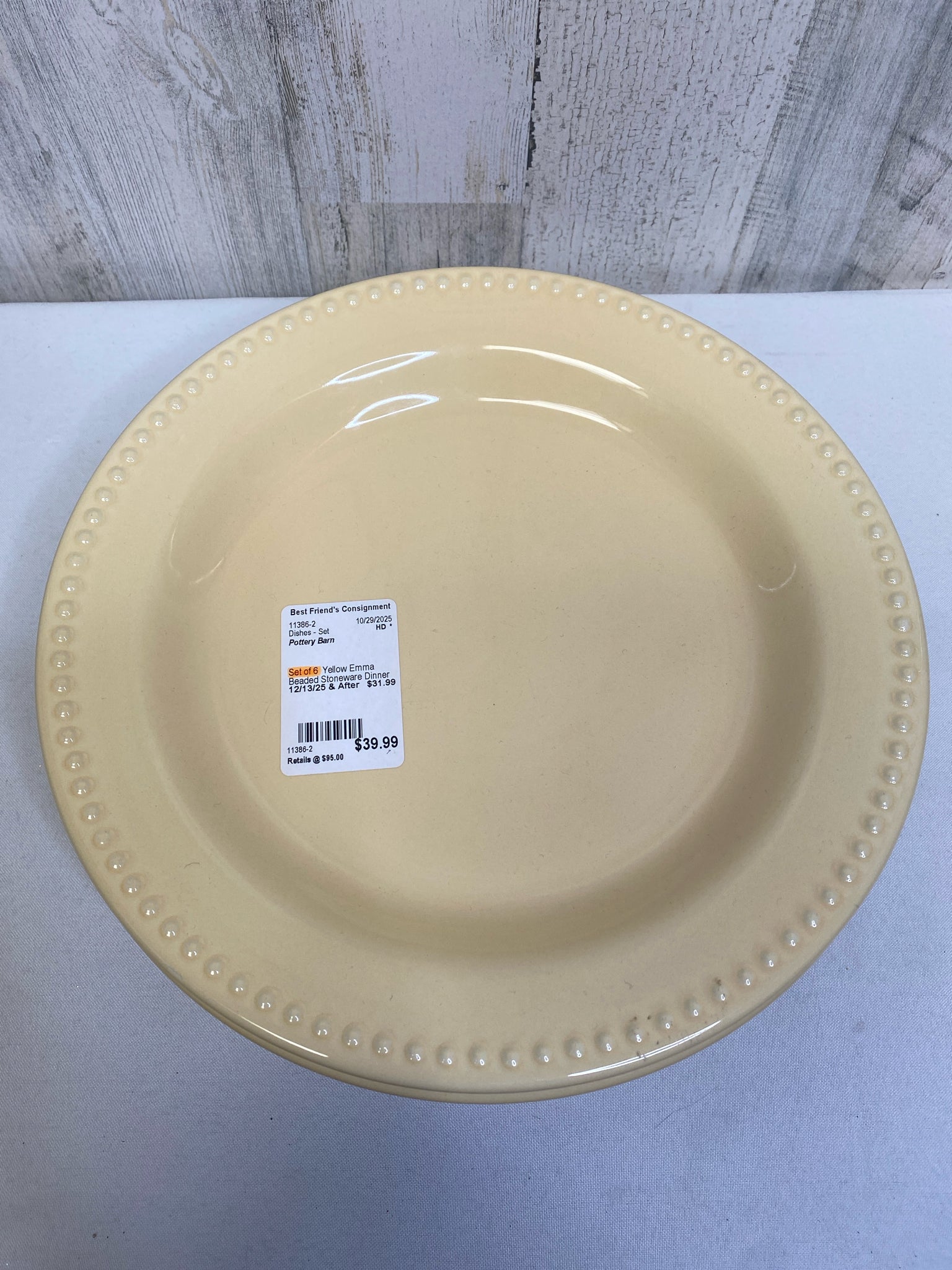 Set of 6 Yellow Emma Beaded Stoneware Dinner Plates