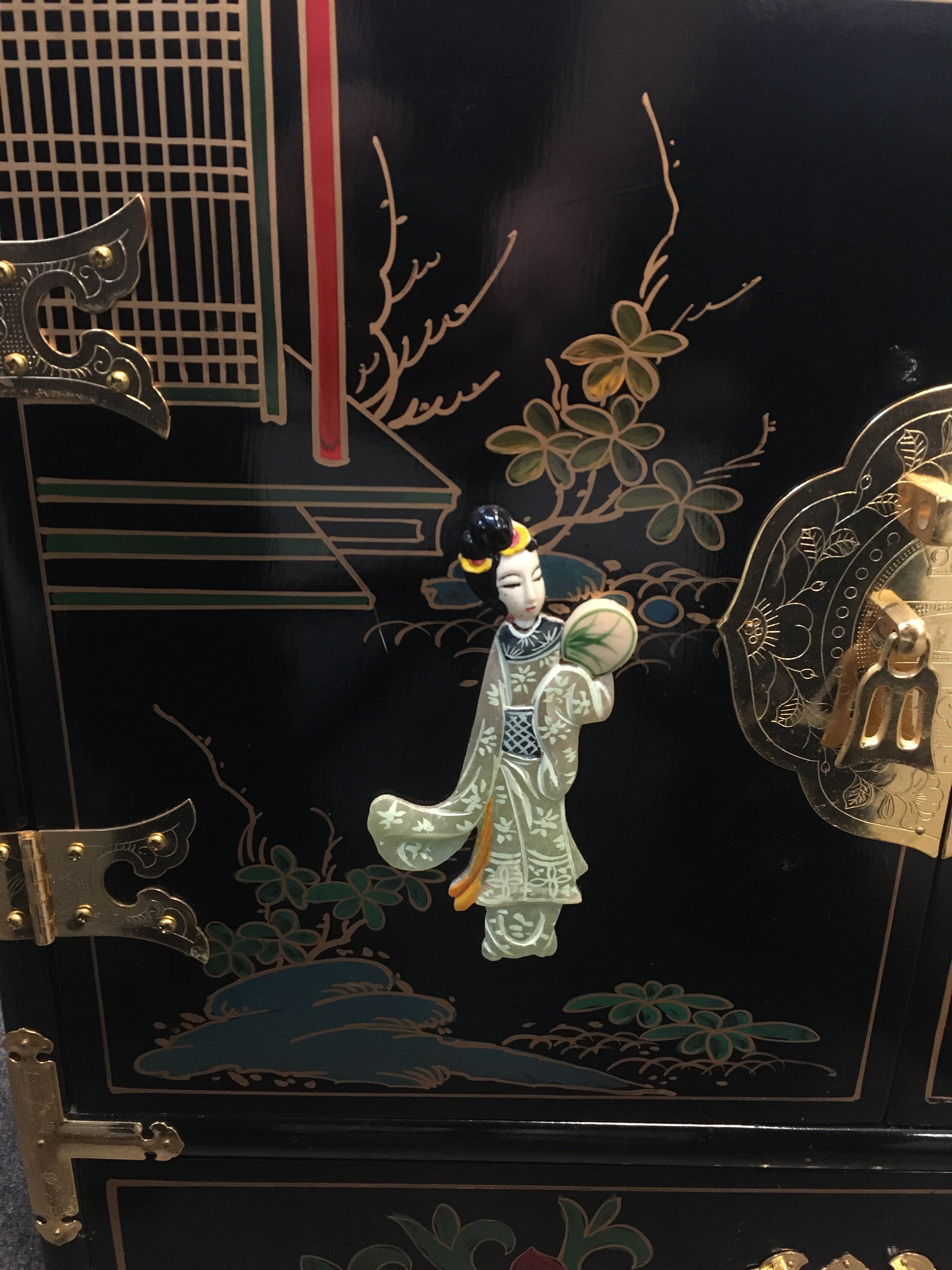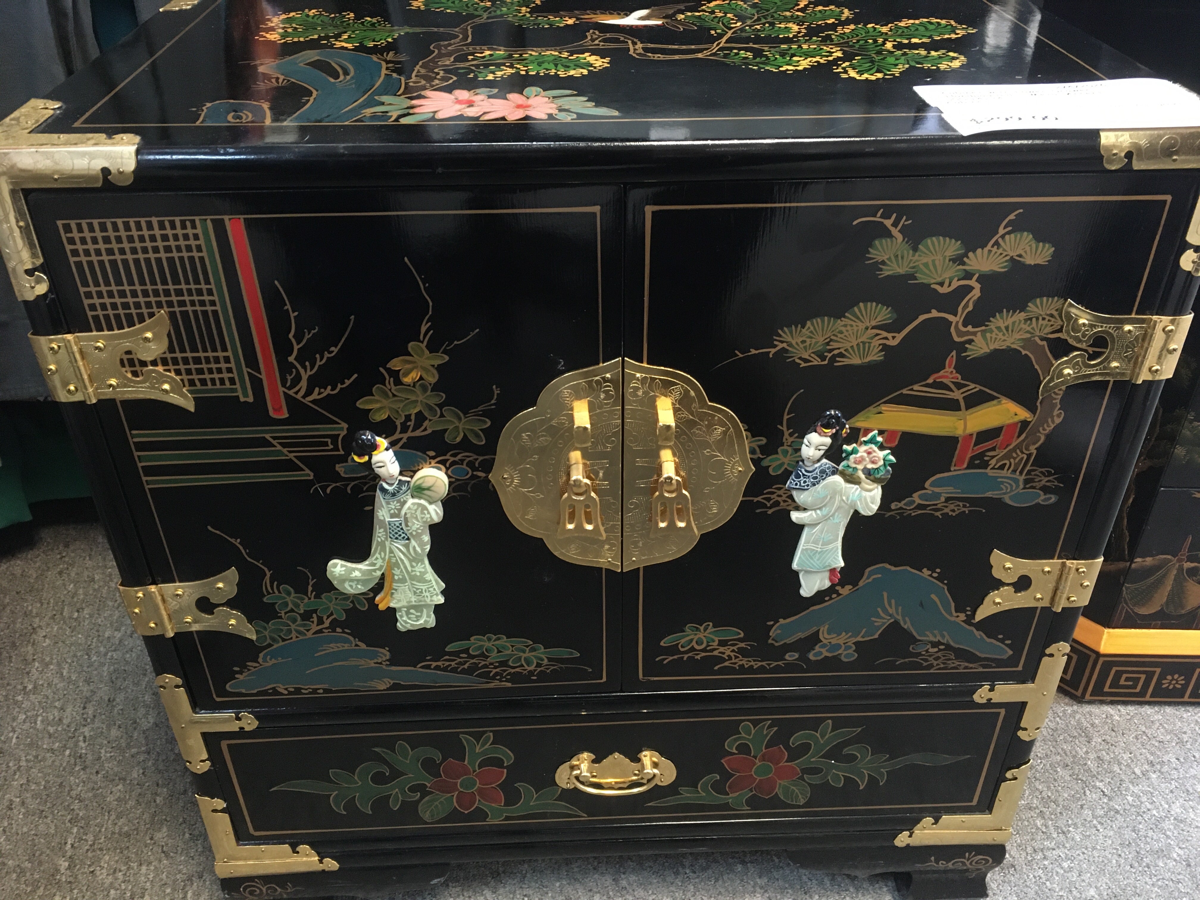 Cabinet with Lower Drawer - Handpainted - Metal Accents - 22x14x24