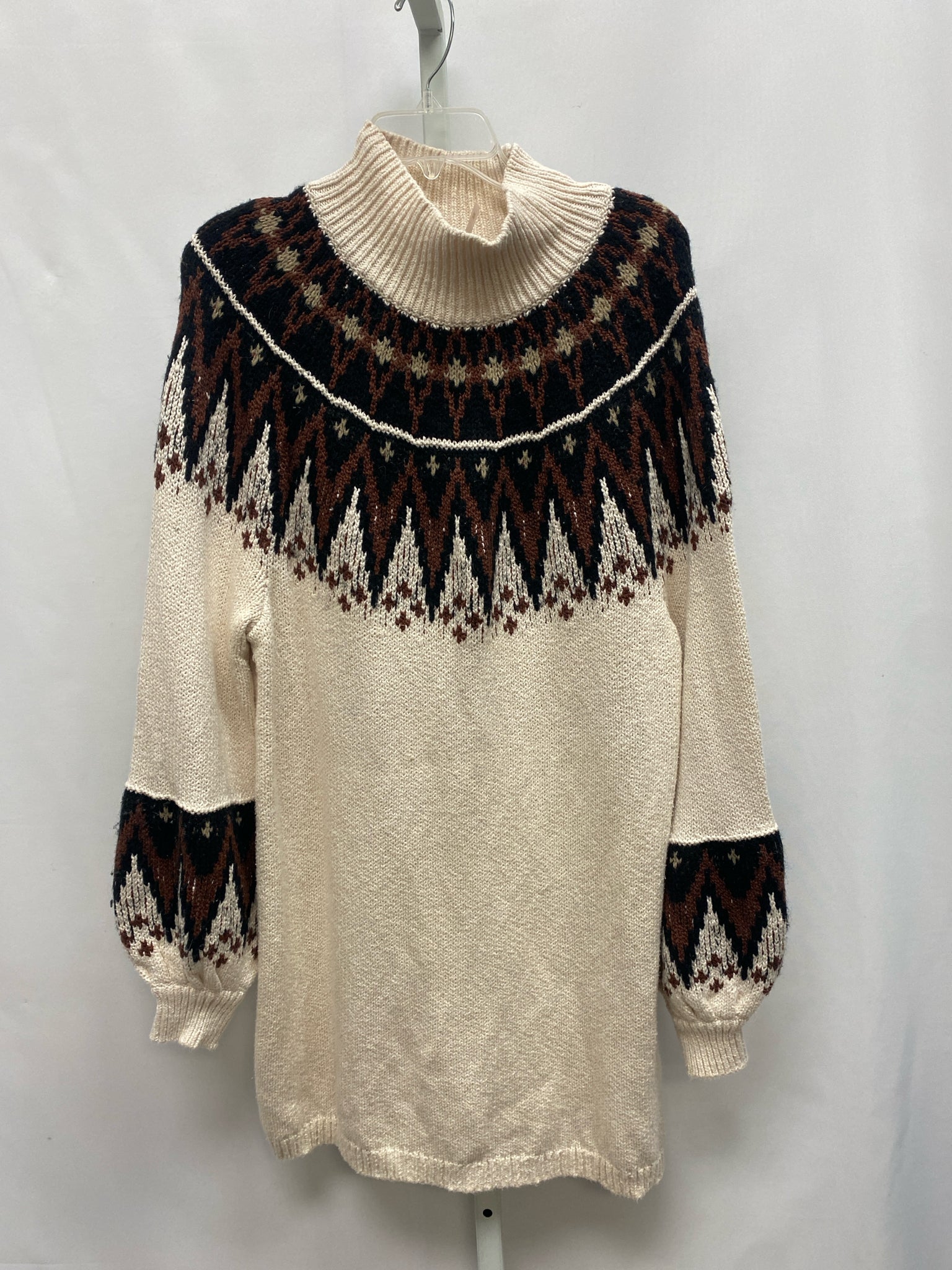 knit print w/cream mock neck