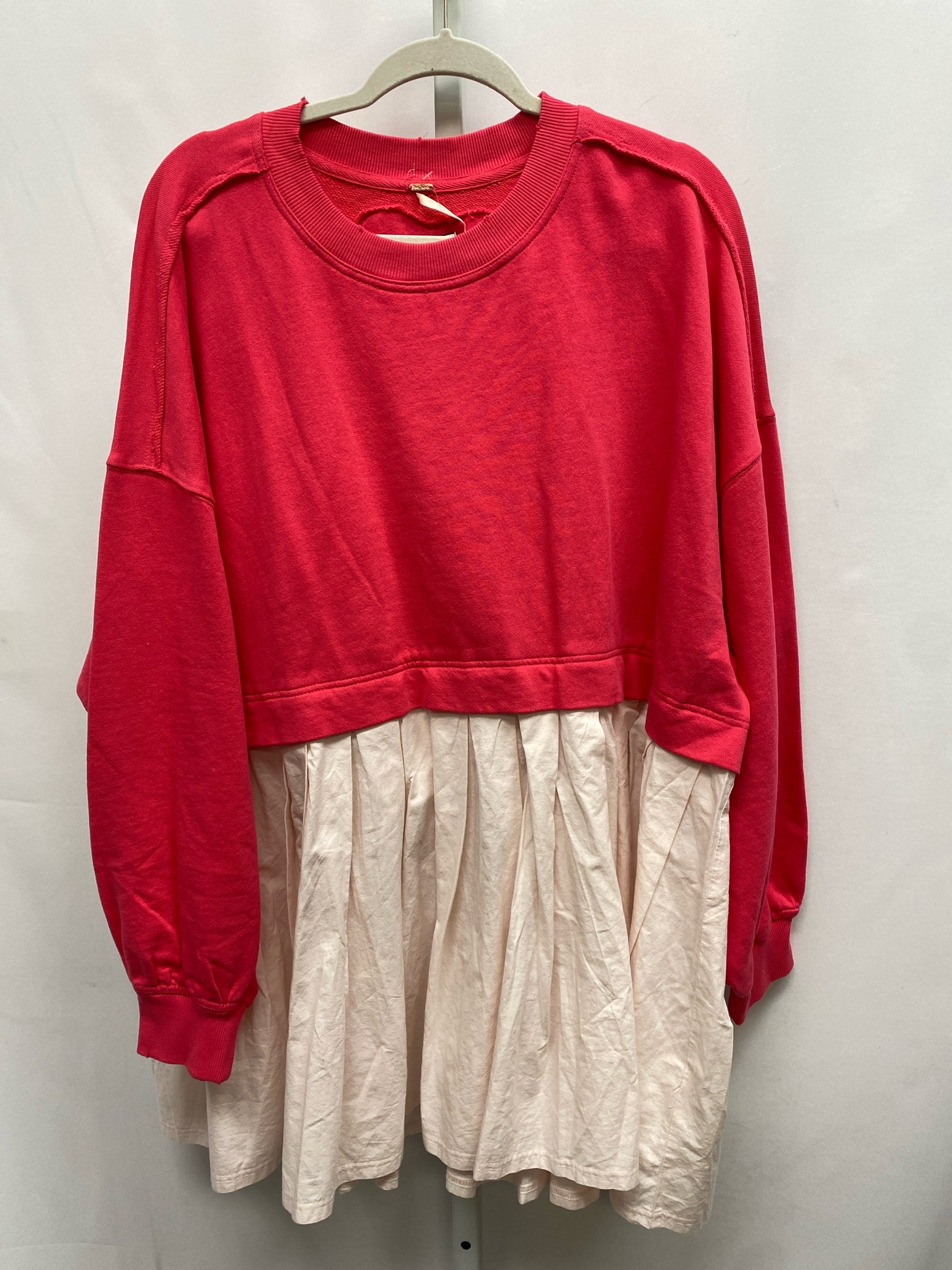 pink fleece top, pleated skirt