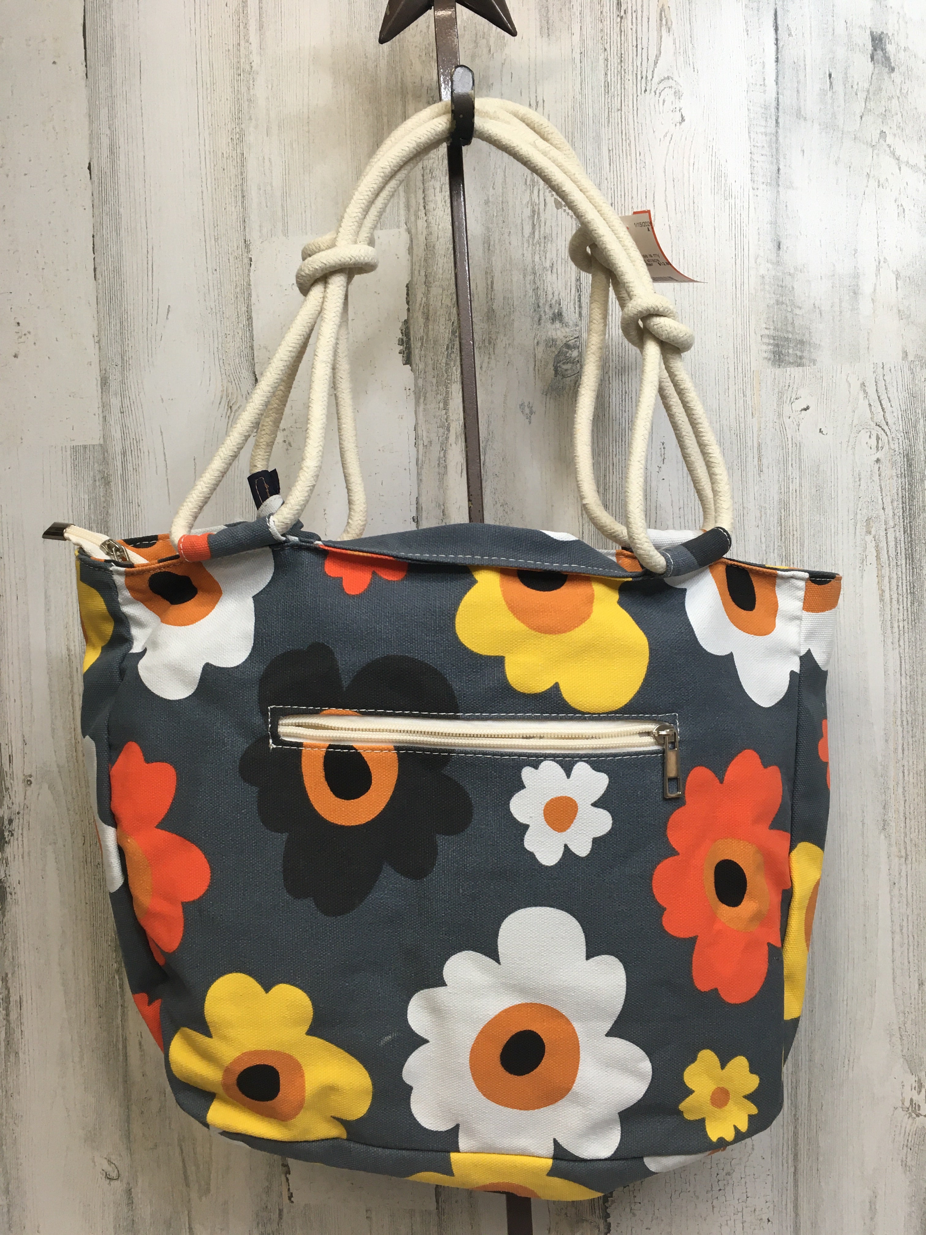 Gray Floral Tote