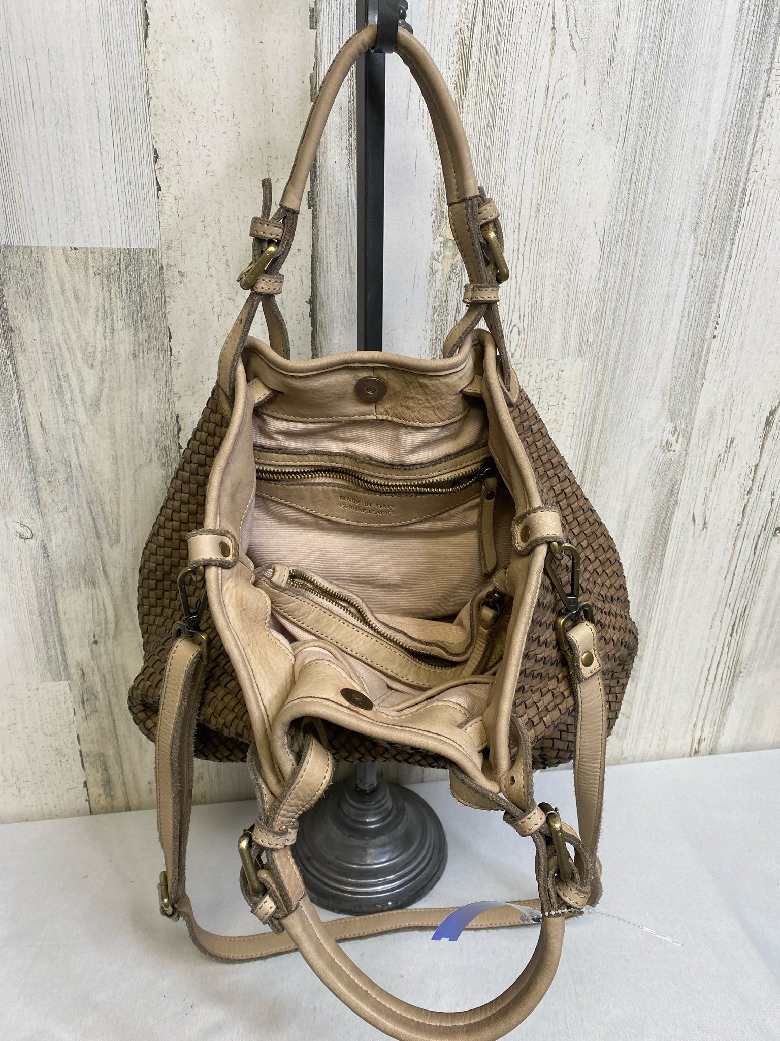 leather weave w/double handles