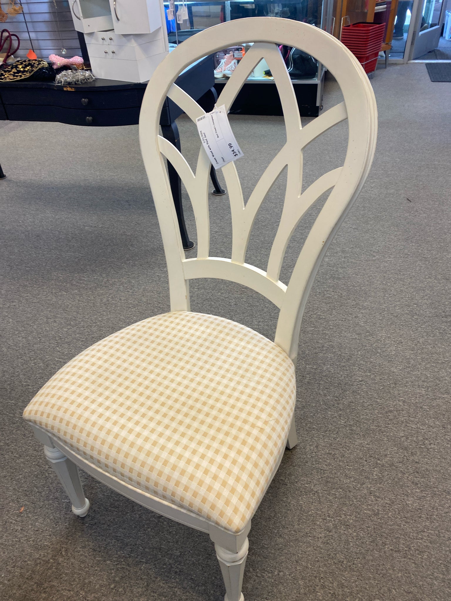 Cream Wood with Plaid Seat