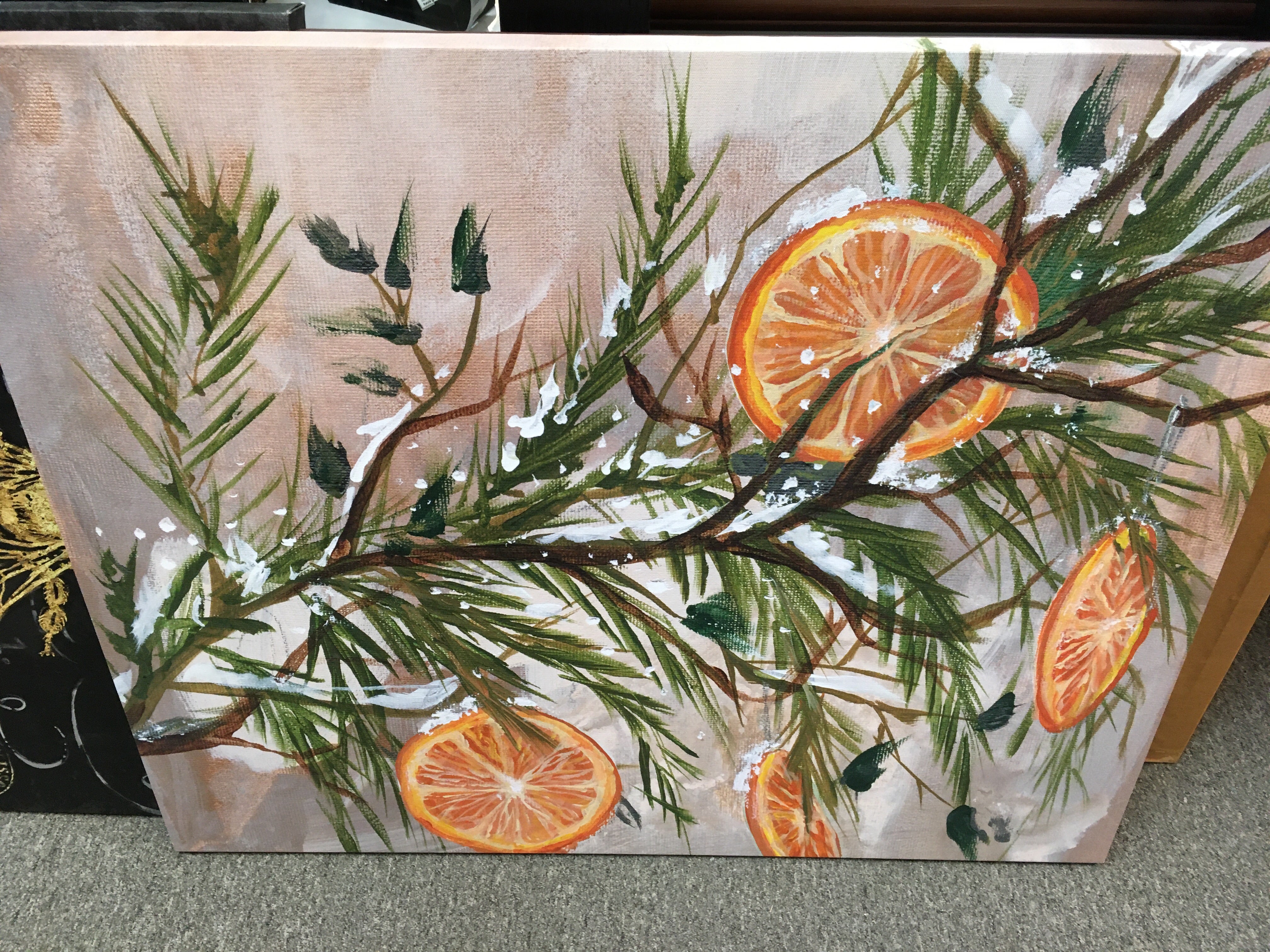 Frosted Tree with oranges - 30x36