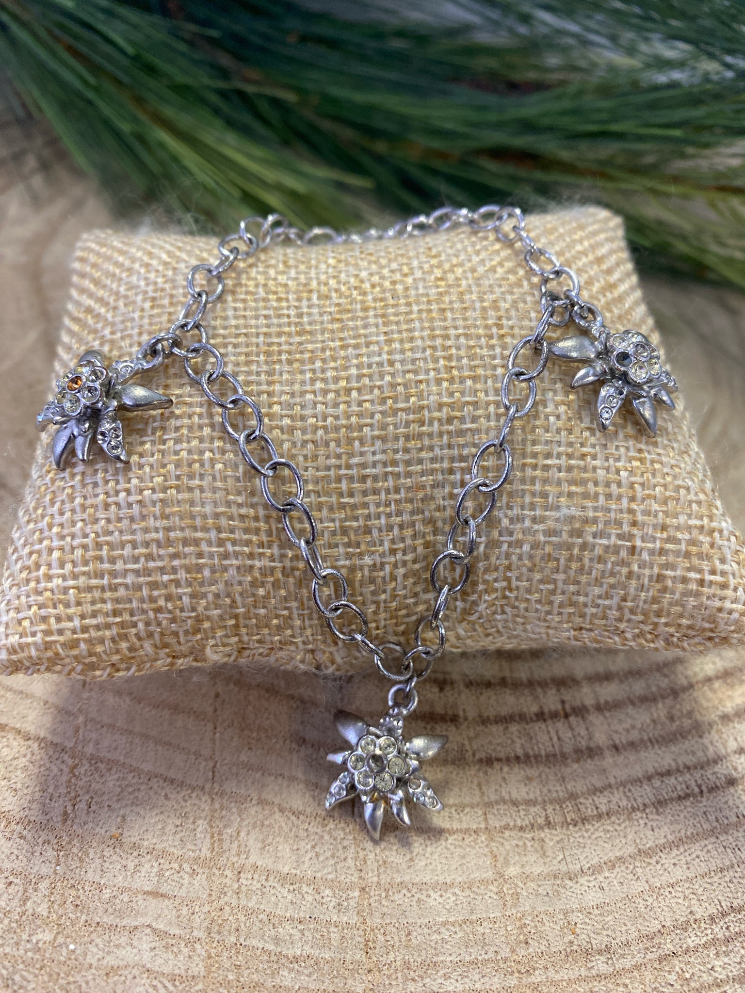 silver w/flower burst charm