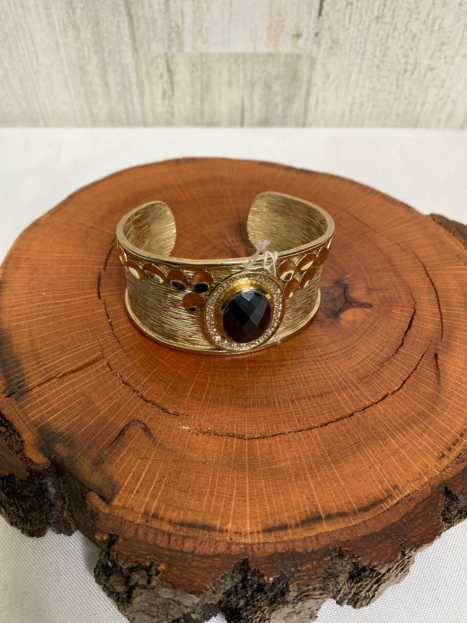 Cuff, blk stone, cz, textured