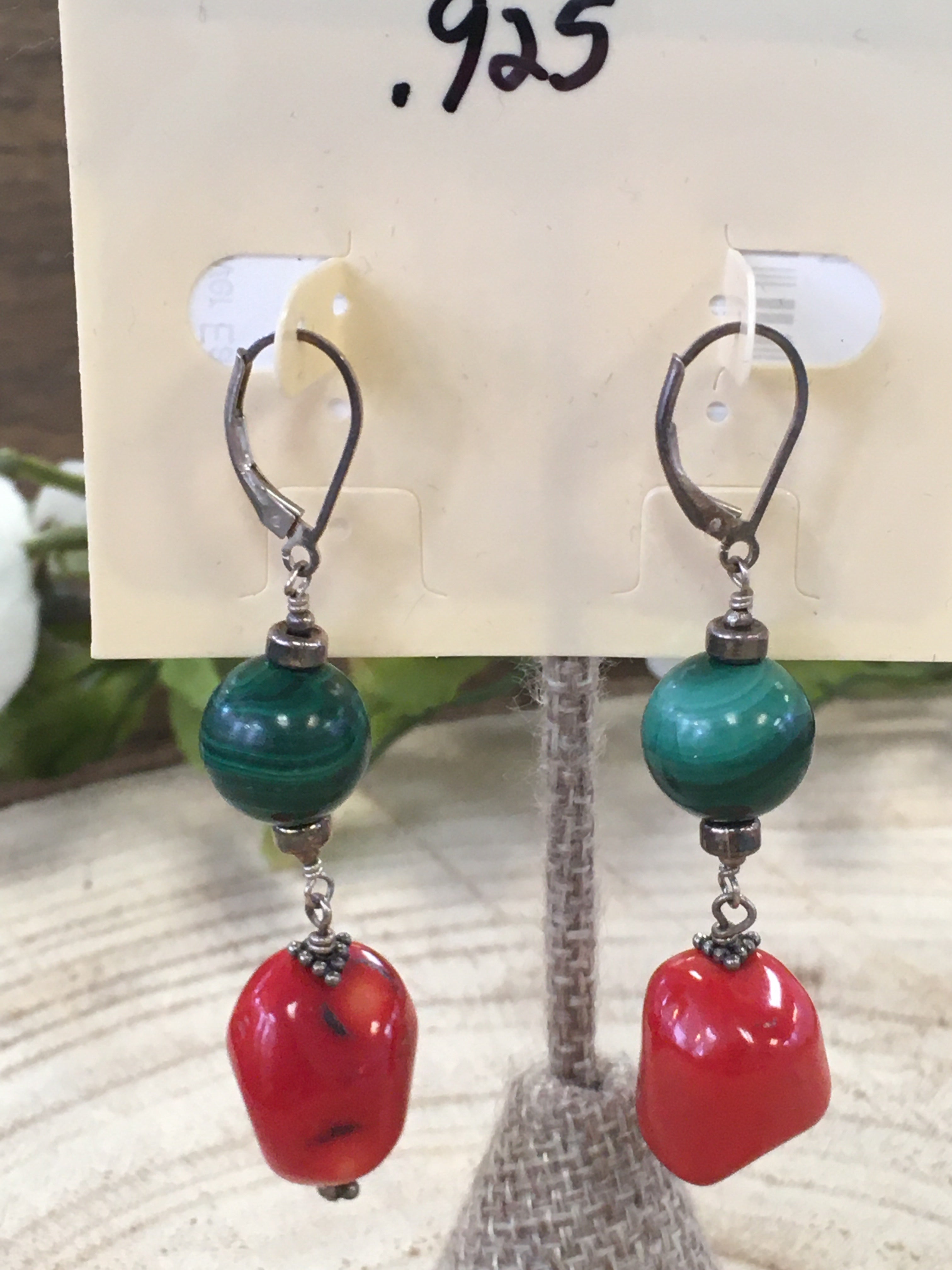 .925 Red coral and Green malachite stones