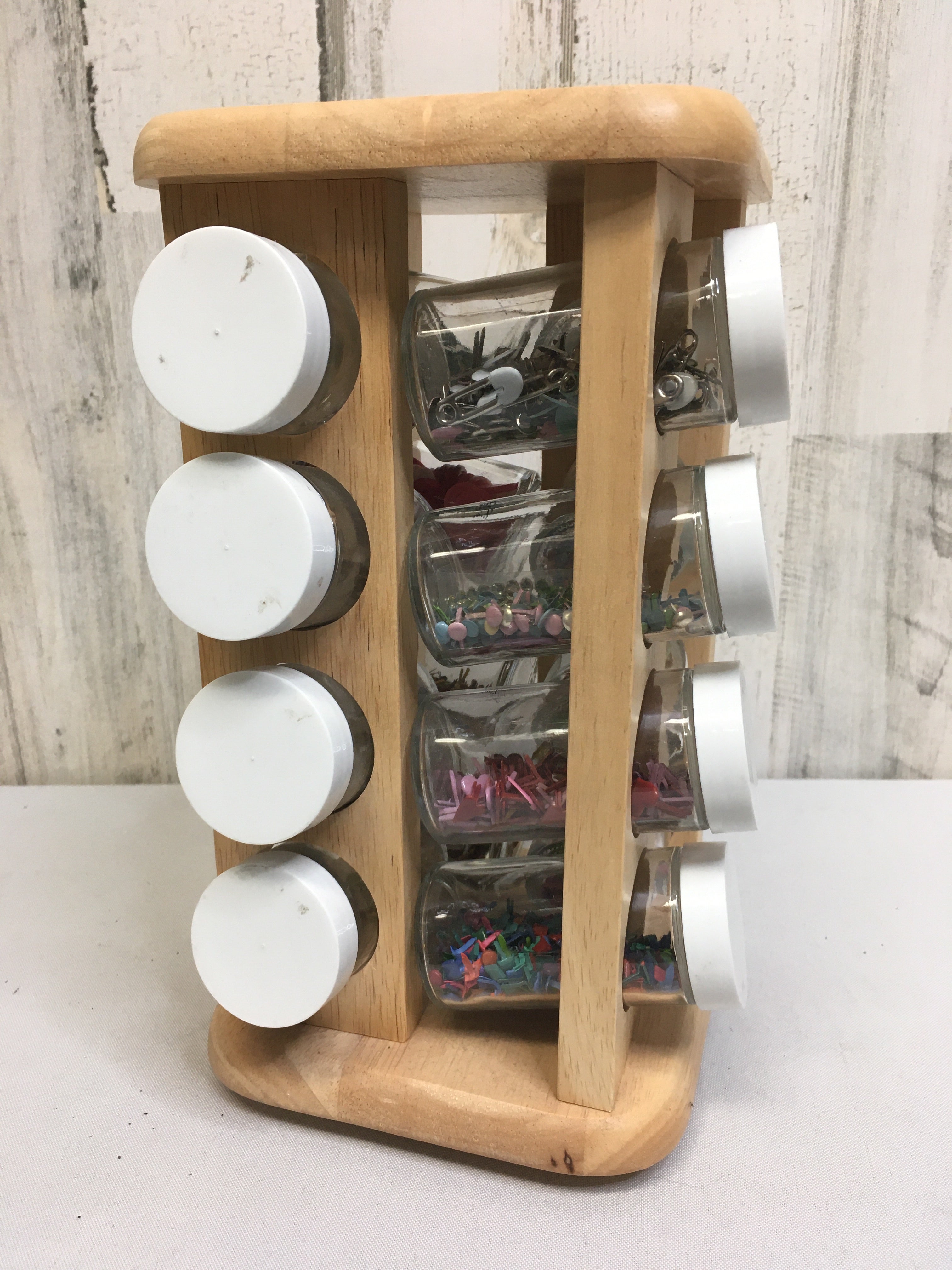 11" by 6" - Spice Rack Full of Buttons, Pins, Clips, Etc