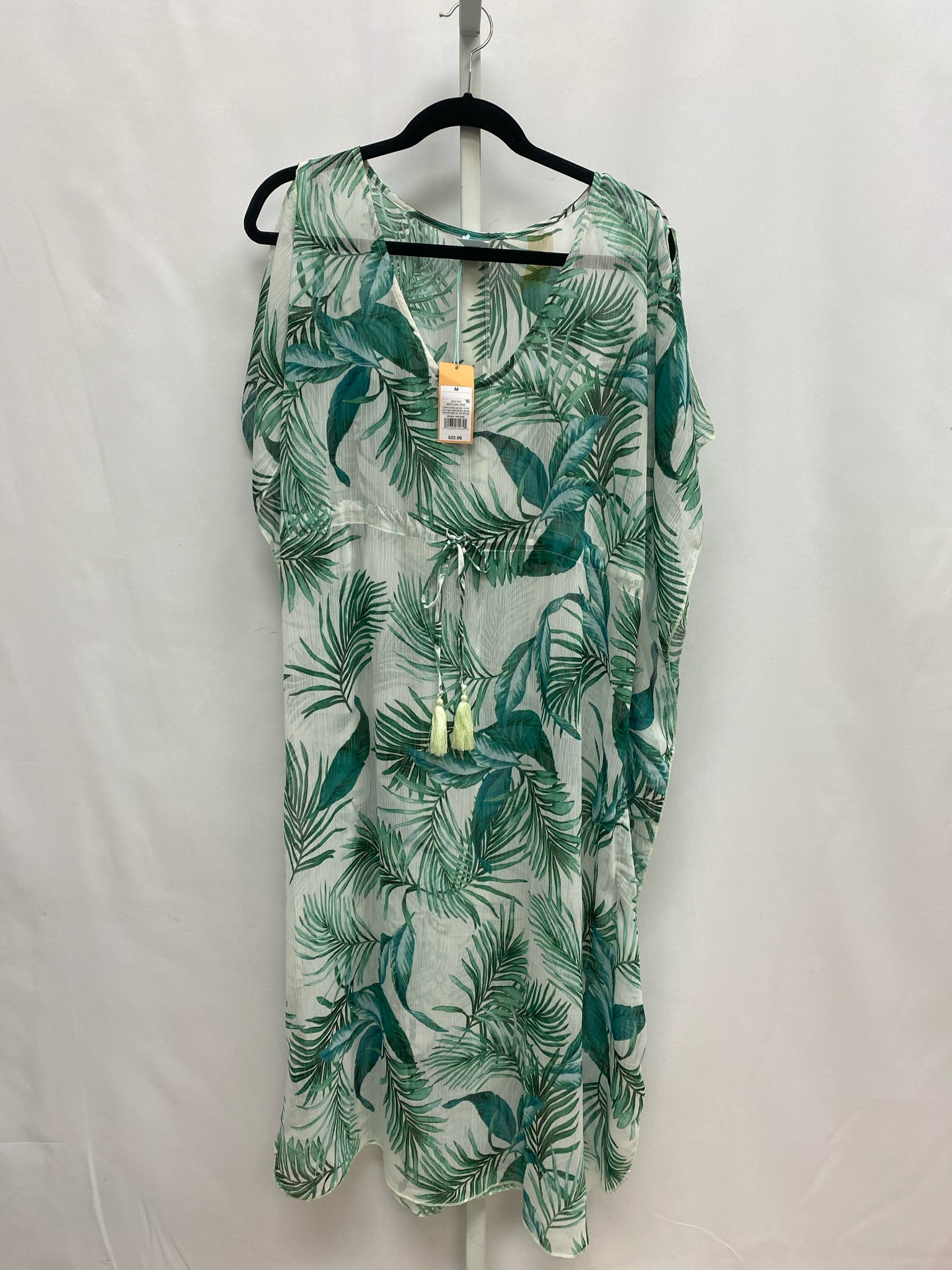 NWT - Sheer White with Green Palm Leaves