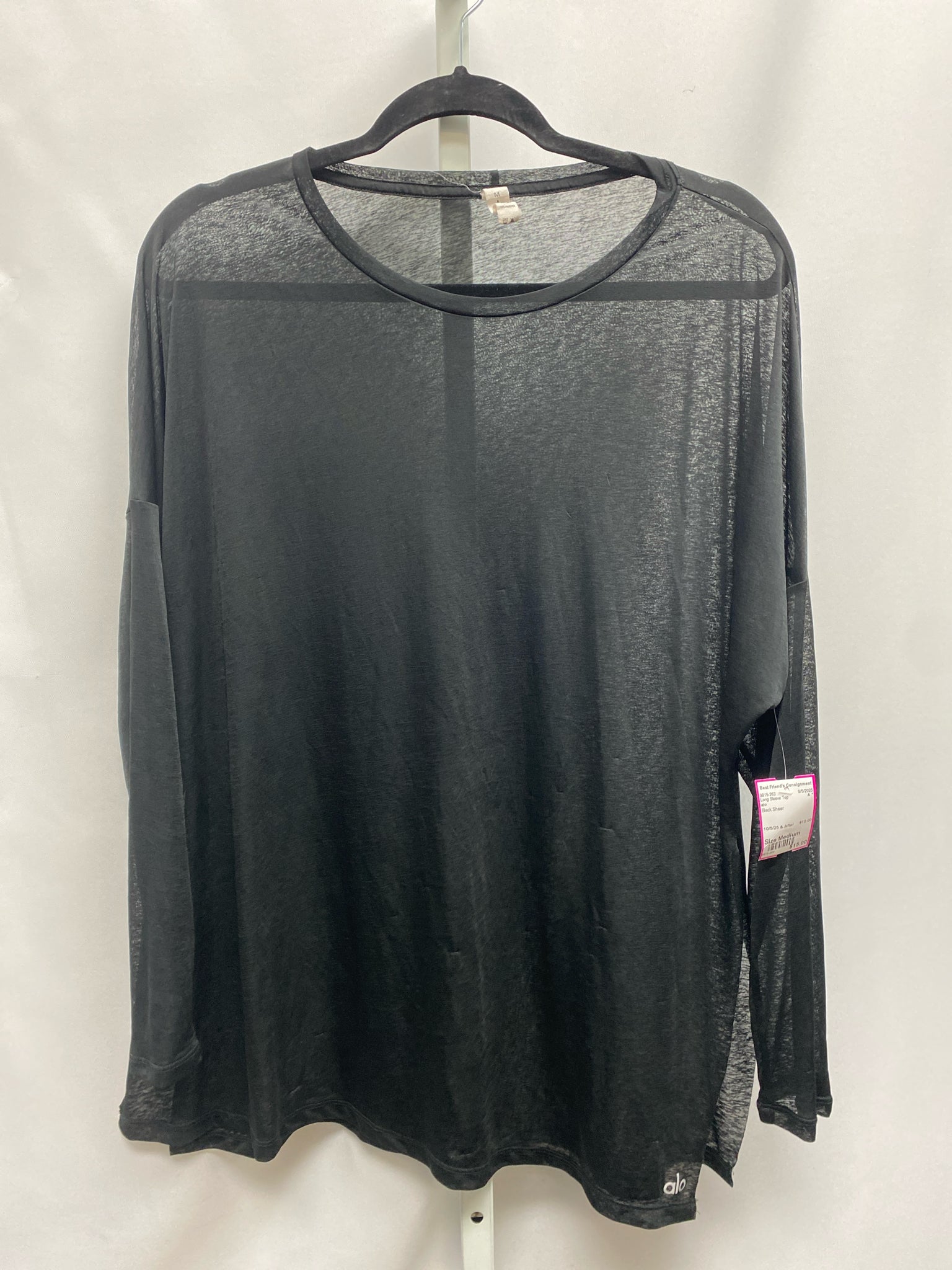 alo Size Medium Black Sheer Long Sleeve Top