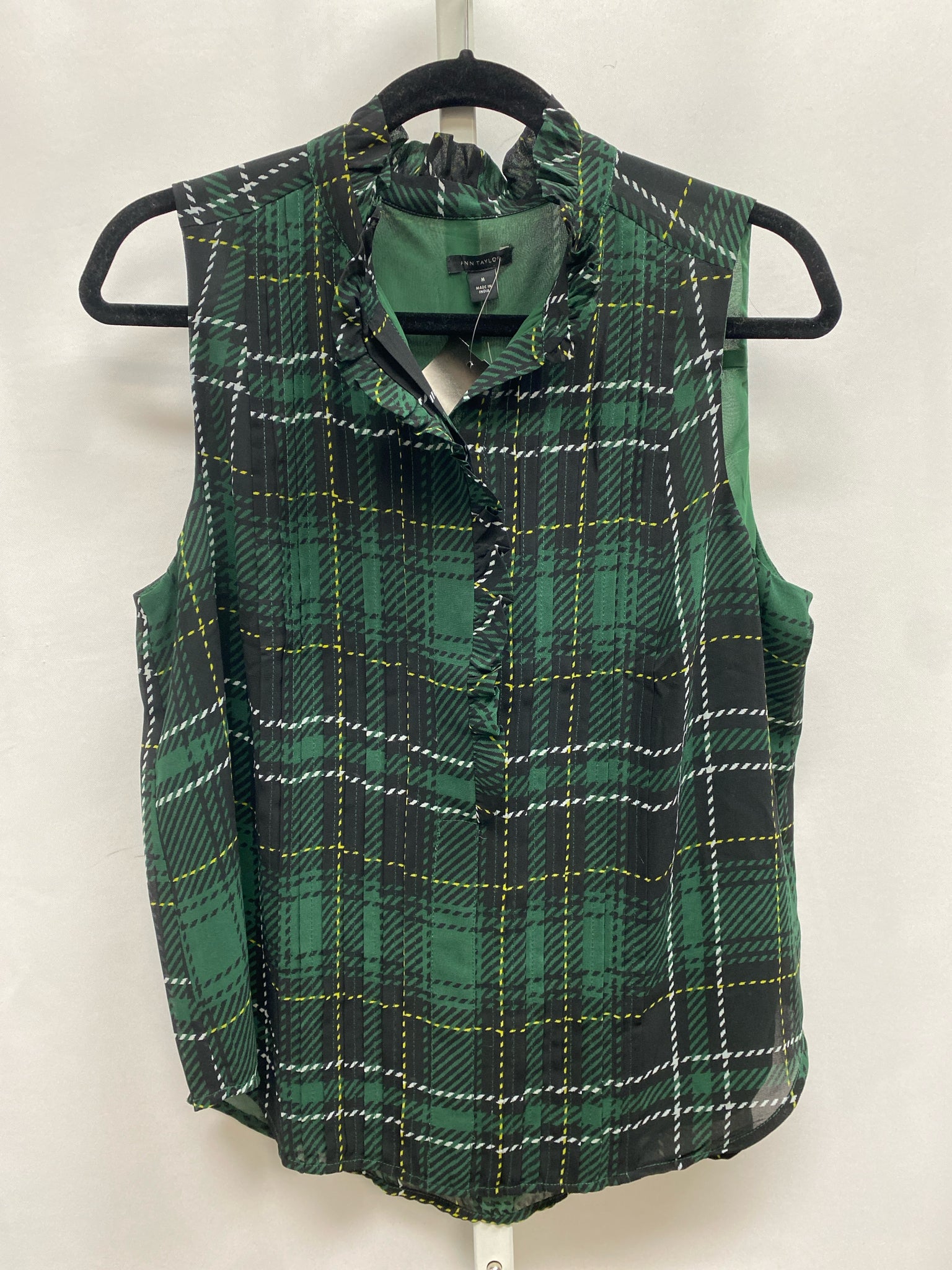 Nwt - Green/Navy Plaid; Pleated/Ruffled