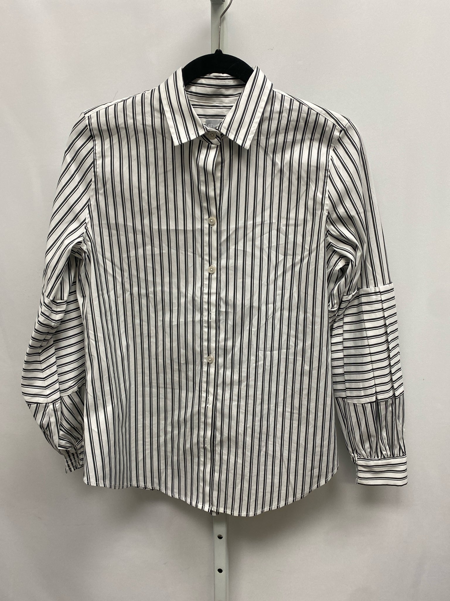 Chico's Size 6 White/Black Long Sleeve Top