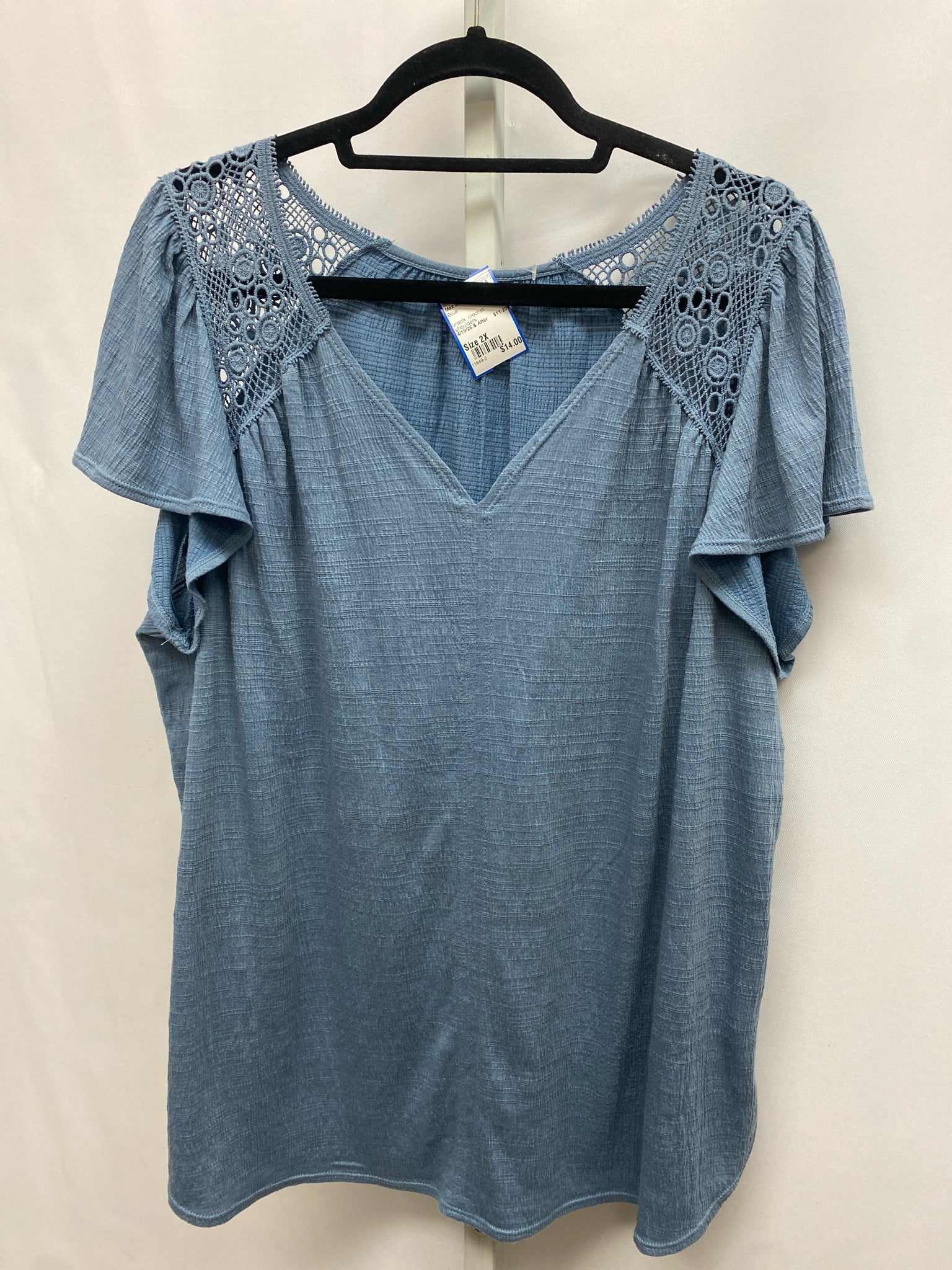 vneck, crochet shoulders