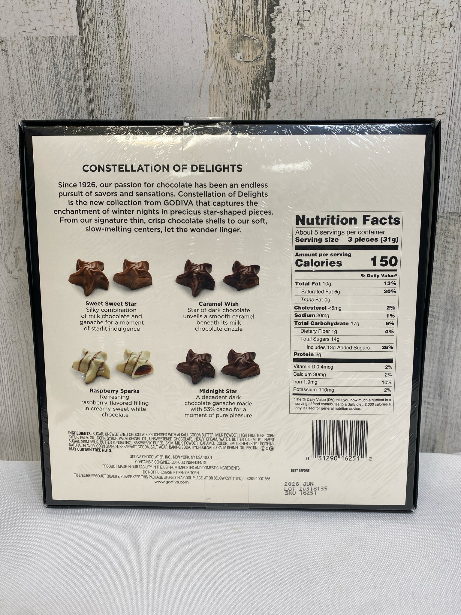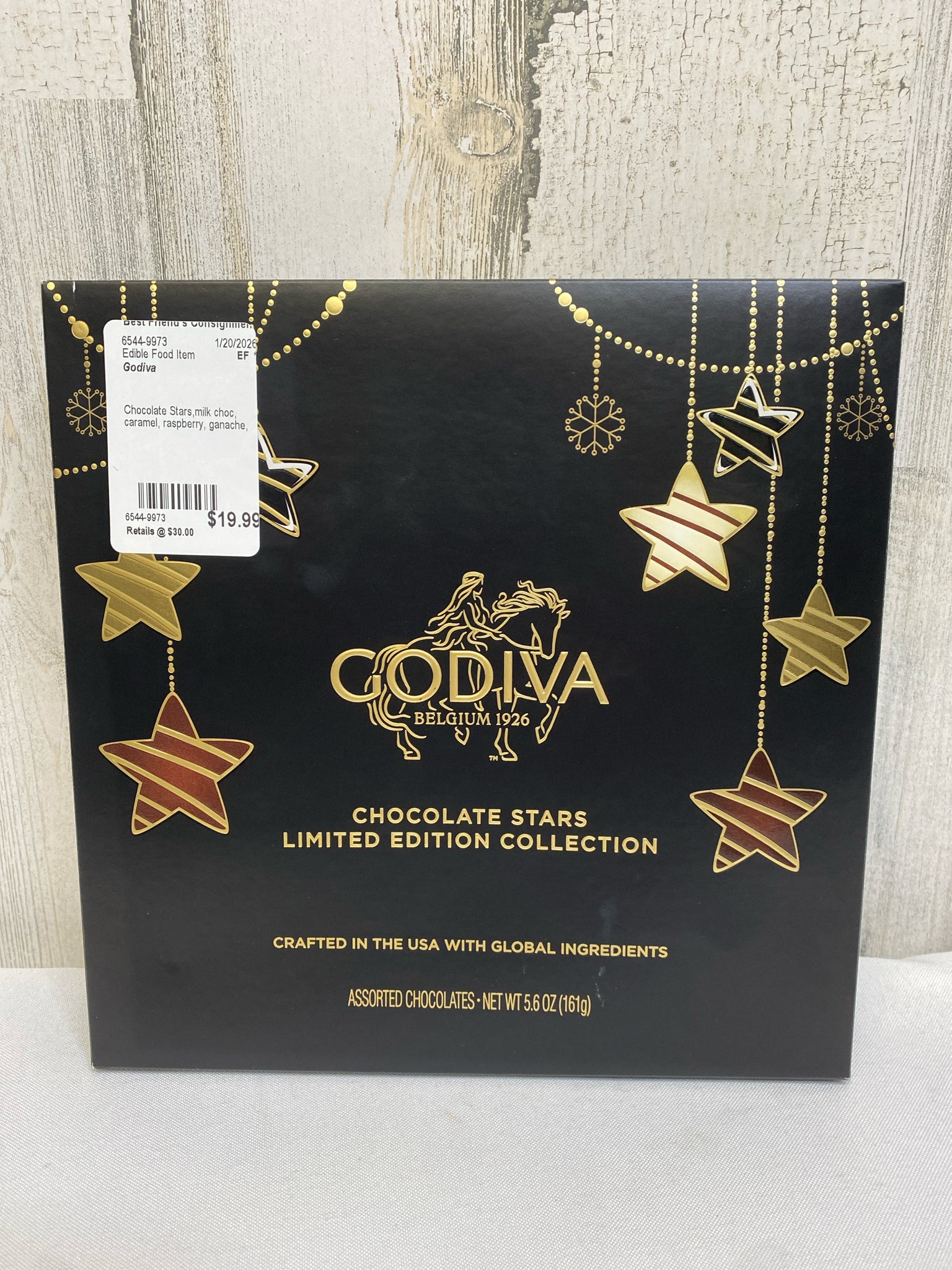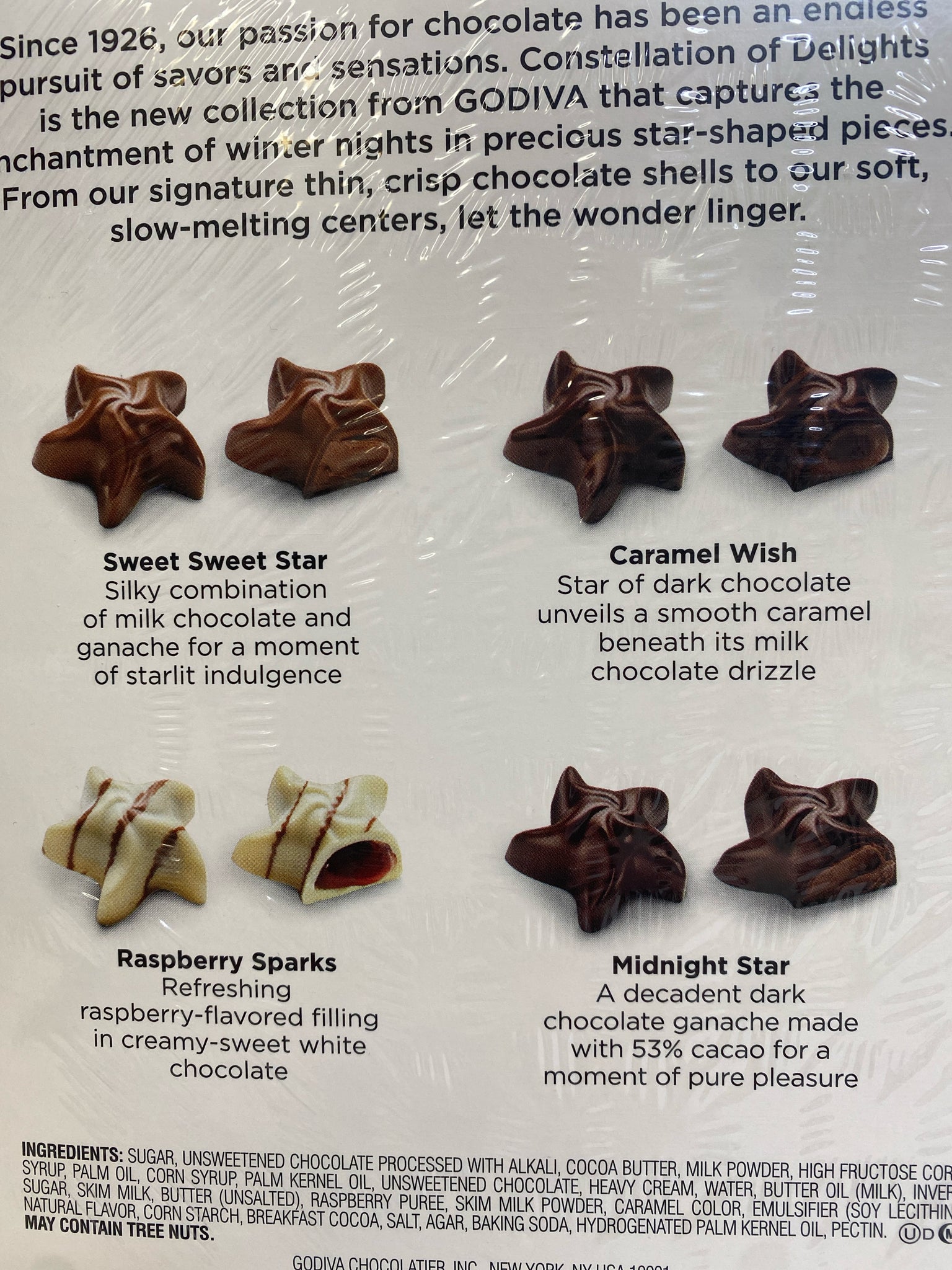 Chocolate Stars,milk choc, caramel, raspberry, ganache, limited edition, 5.6 oz, 16 pcs. YUM! (BFC team approved!)