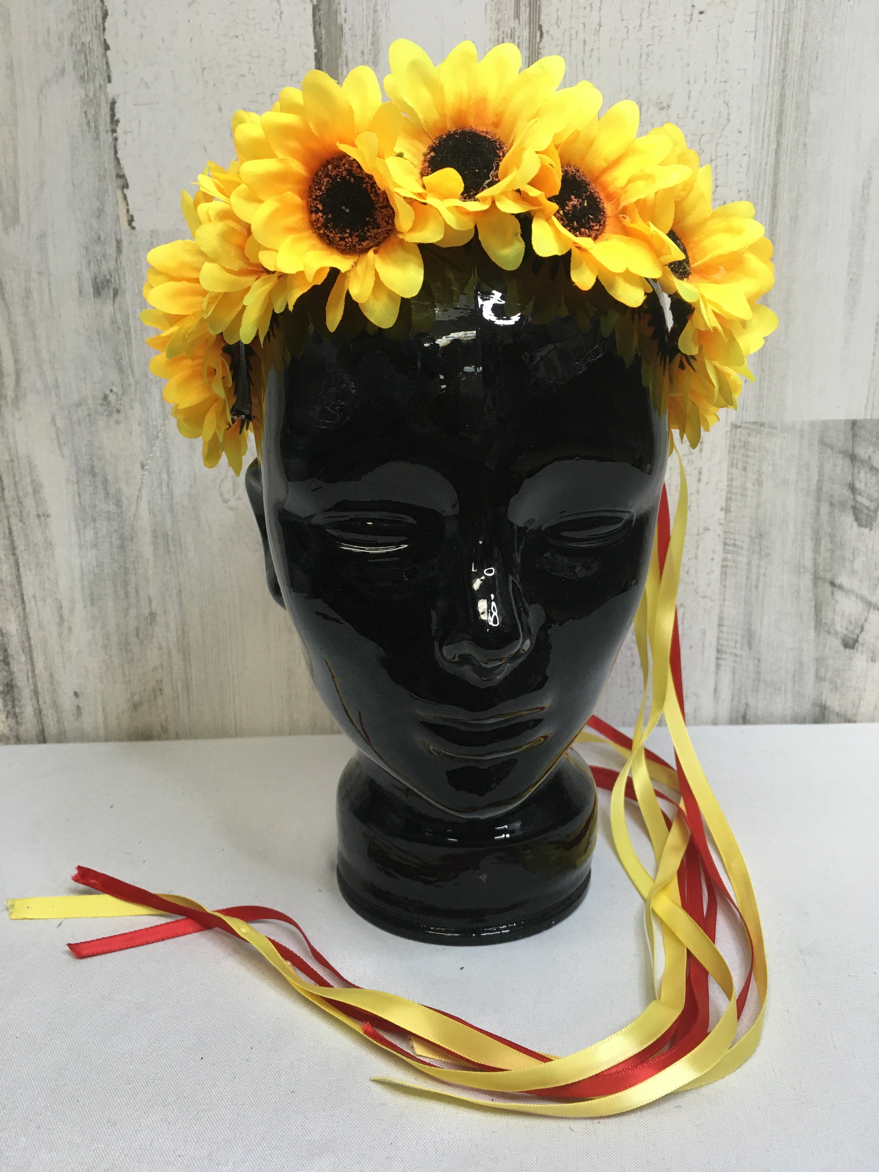 Sunflower Headband with Red/Yellow Ribbon