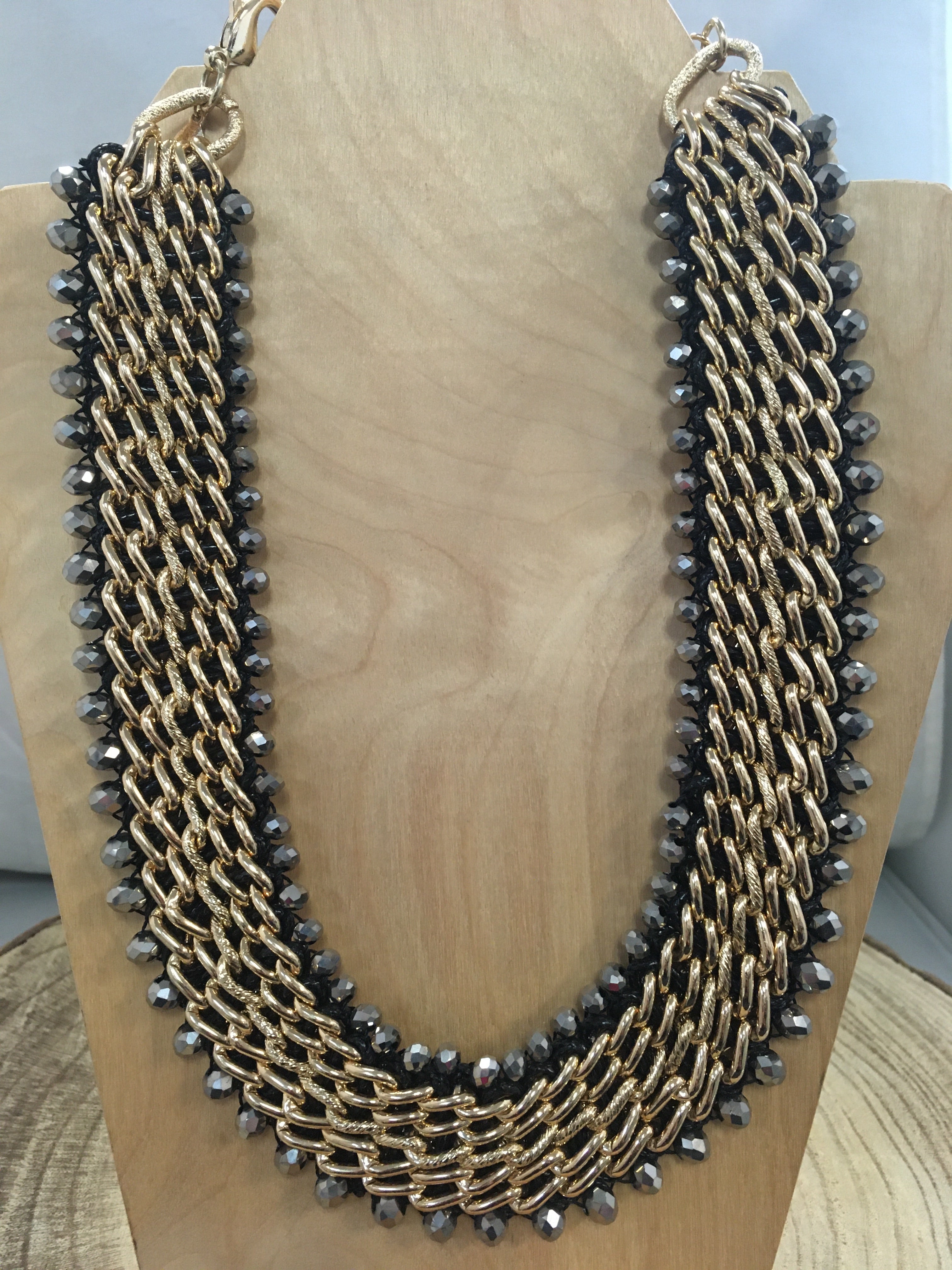 goldtone links/gray beads