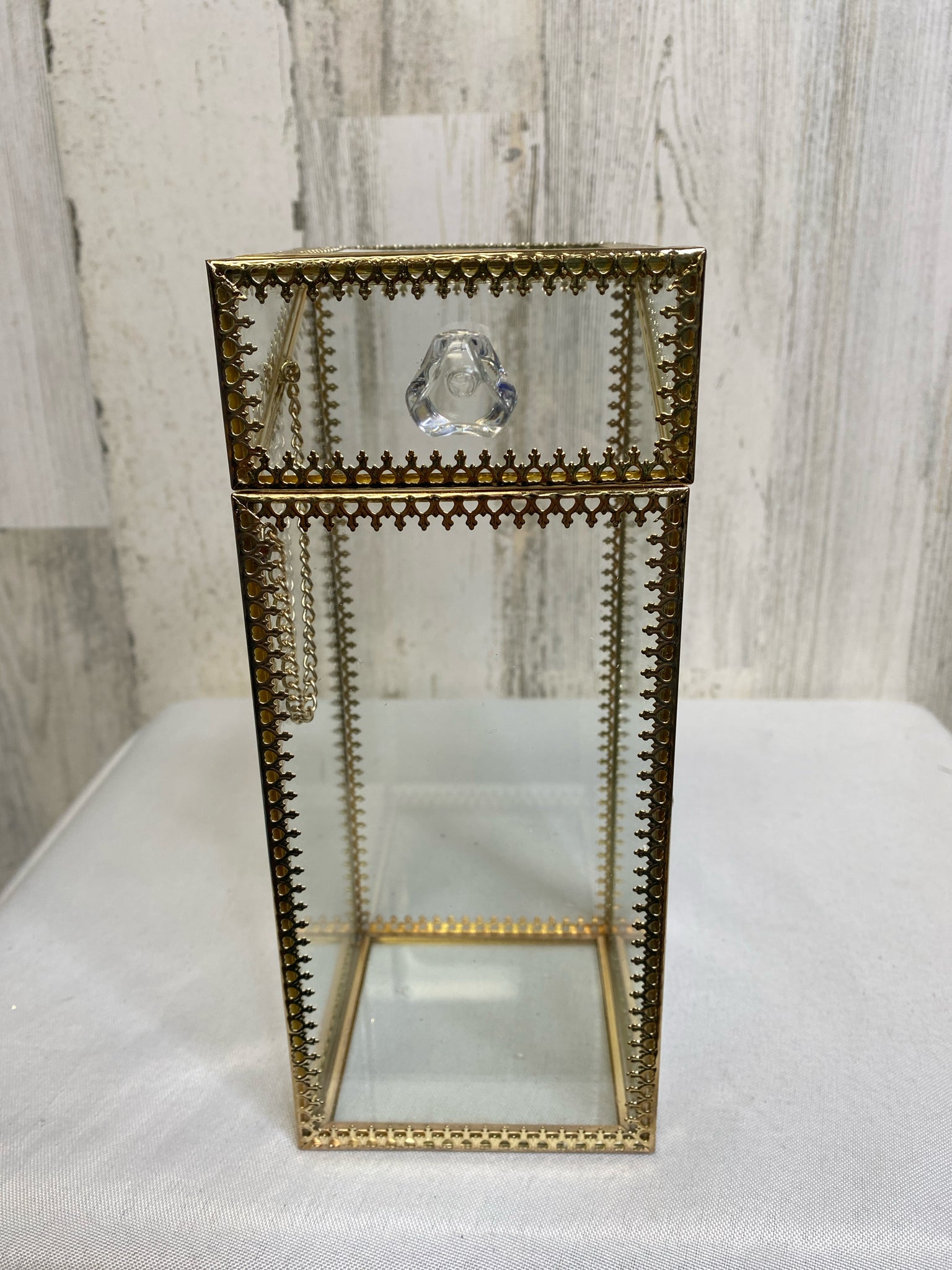 glass/brass, 8" lid opens