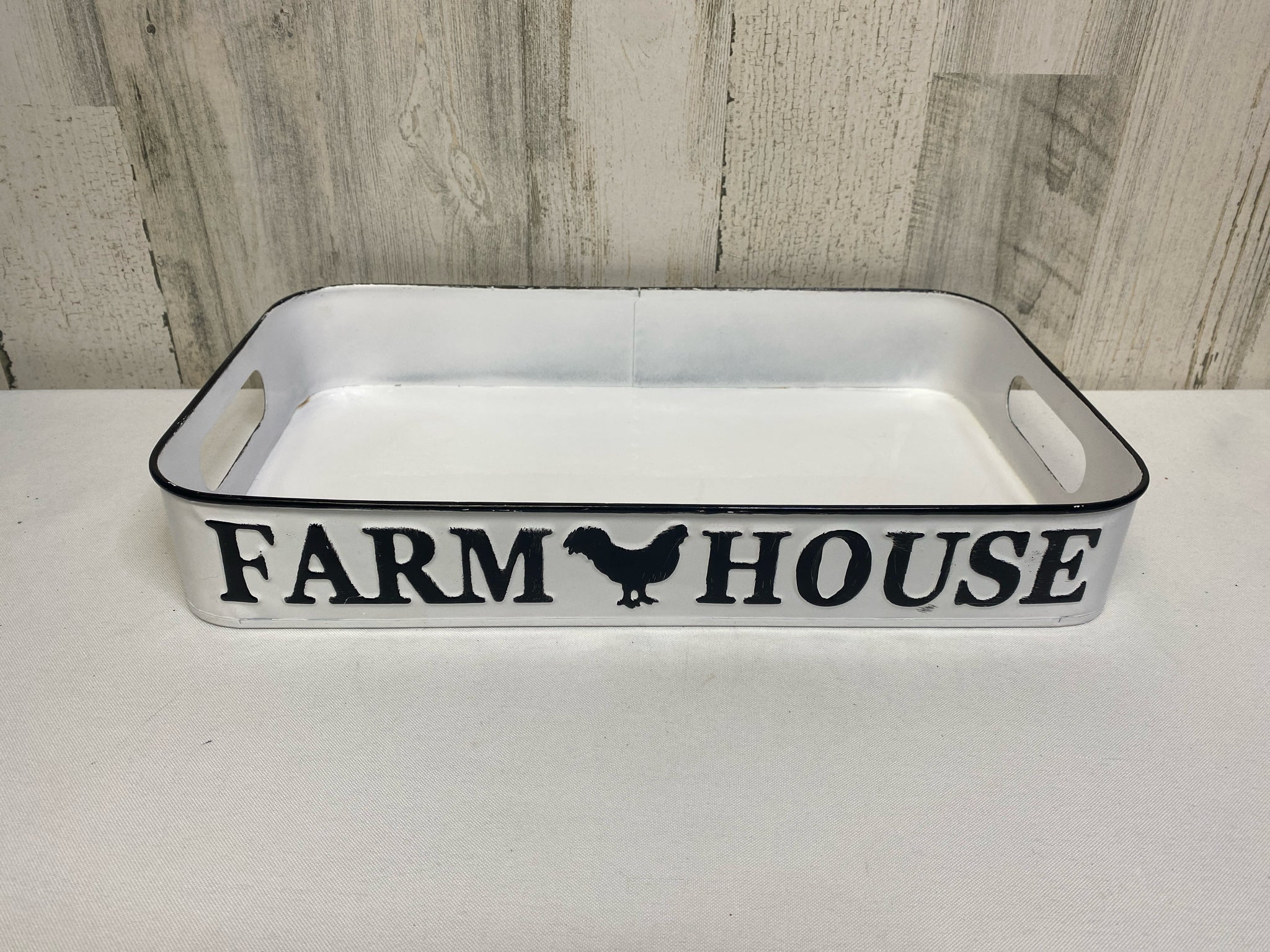 15" by 9" by 2" - White Metal Tray - Farmhouse