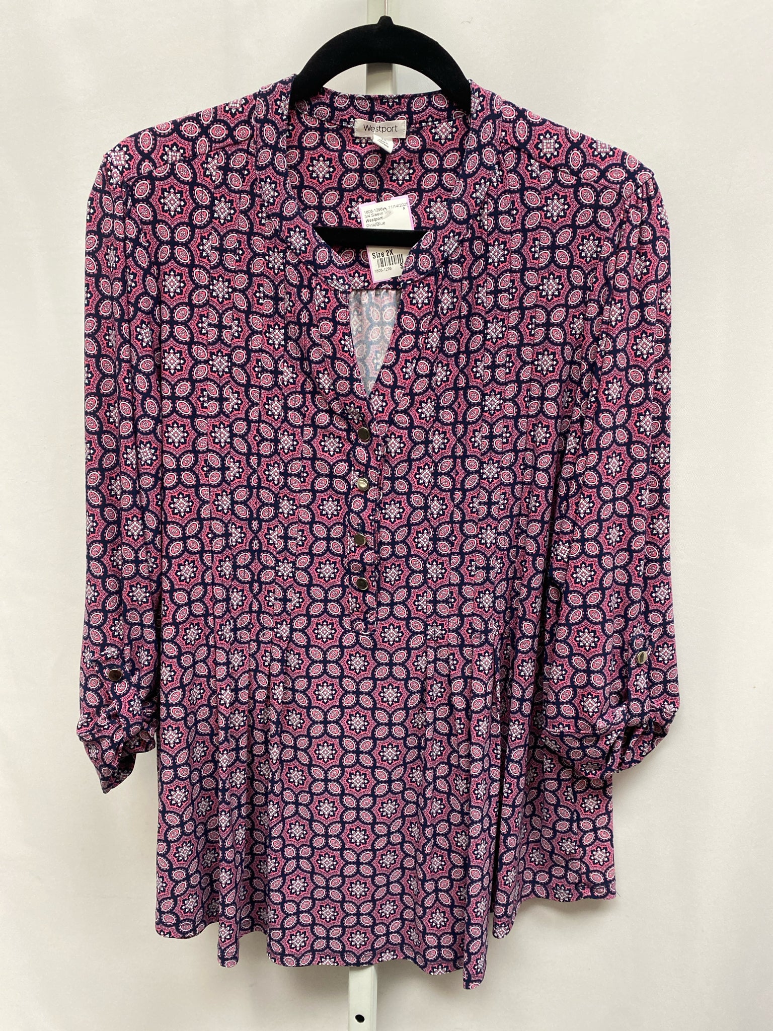 Westport Size 2X Pink/Blue 3/4 Sleeve Top